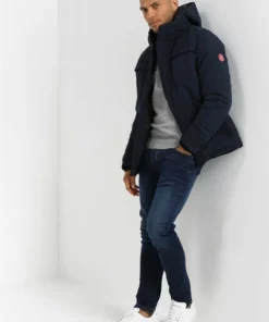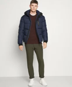Pier One Uomo BASIC PUFFER JACKET WITH CONTRAST HOOD – Giacca Invernale – Dark Blue/bordeaux